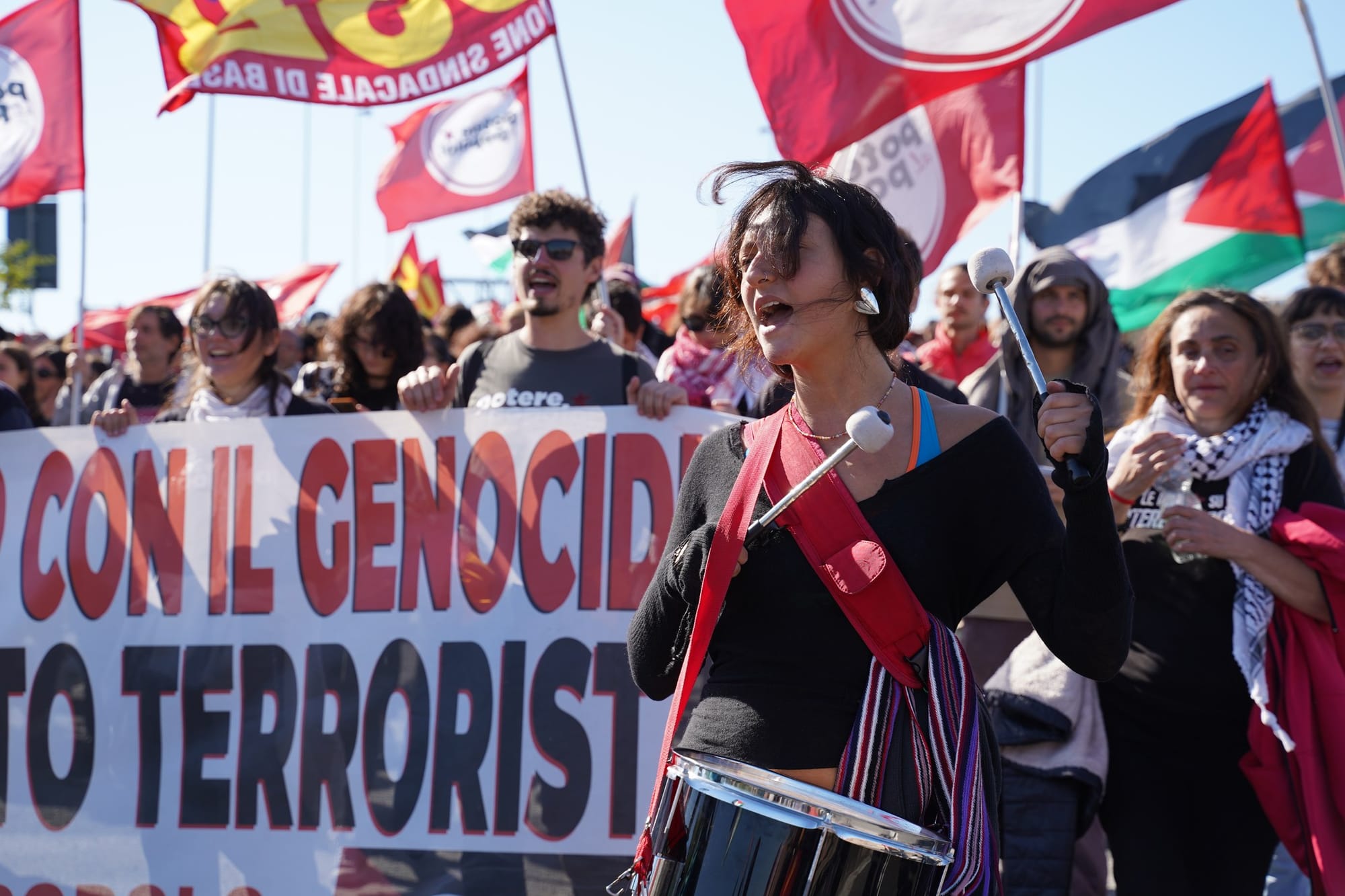 Heute, zwei Jahren seit dem Beginn des Genozids in Gaza, erlebt Italien somit eine der stärksten Solidaritätsbewegungen seiner Geschichte. Im letzten Monat kam es zu einer quantitativen Akkumulation von Kräften, die zu großen Massenmobilisierungen geführt hat. Tag für Tag wurde immer deutlicher, dass die Unfähigkeit und der Unwille der italienischen Regierung, ihren Teil zur Beendigung des Genozids beizutragen (wir erinnern daran, dass Italien nach den Vereinigten Staaten und Deutschland der drittgrößte Waffenlieferant Israels ist), eng mit der massiven Prekarität verbunden ist, in der die italienische Arbeiterklasse in den letzten zwei Jahrzehnten gestürzt ist. Dies kommt in dem Slogan "Waffen runter, Löhne rauf" zum Ausdruck, der – zusammen mit "Stoppt den Genozid" – zu einem der Hauptslogans der Demonstrationen geworden ist.